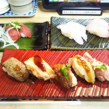 奄美空港から名瀬市内に向かう際、小腹満たしに島魚の寿司でもと思い寄ってみました。18時少し前の入店時はお客さんは2組しかおらず、結構空いてるな、の印象でしたが、18時を過ぎた途端、来るわ来るわでたちまち満席に。肝心の島魚、当日は赤マツとネバリ(高級魚のハタ)の2種類のみでしたが、赤マツの握りは最高でした。その他肉寿司、特に馬刺し握りも旨かった。あと、回転寿司といってますが、レーンに寿司皿は回っていません。レーンに上下に2本ありますが、ともに注文品を届けるためのものでした。