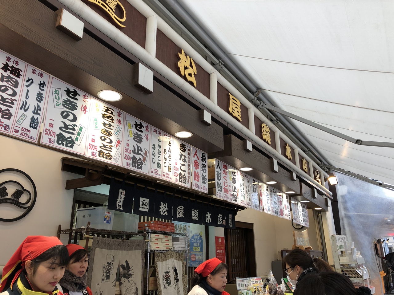 仲見世商店街にあるのど飴の専門店です。創業は明治初年という歴史ある老舗です。職人さんがガラス越しにまな板の上でのど飴を切る音が軽快に響いています。きなこや柚子、梅、蜂蜜などかなりの種類の飴が売られています。試食ももらえます。
