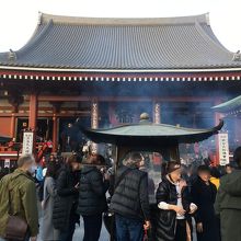 浅草寺本堂の前に常香炉という、火をつけた線香を立てるものがあり