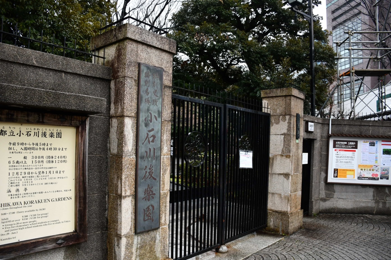 地下鉄なら後楽園駅を降りてすぐ、中央線は水道橋駅西口から歩いて十分足らずでしょうか。中央線飯田橋駅からは陸橋を渡らねばなりません。文京区と千代田区の境界です。入り口は一箇所しかありません。元は水戸藩の庭園で、今は都心で貴重な緑です。