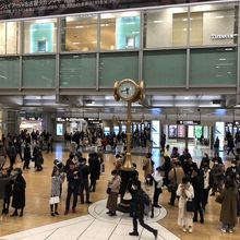 ここは名古屋駅のコンコースの待ち合わせの名所だそうですが、設置位置がエスカレーターの降り口と非常に近く、大きめの荷物をもってエスカレーターから降りていく人も多く、たまっている人とぶつかりそうになって危ないと思いました。設置位置を少しずらしたほうが良いのではないかと思ってしまいました。