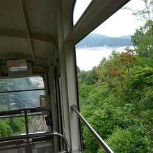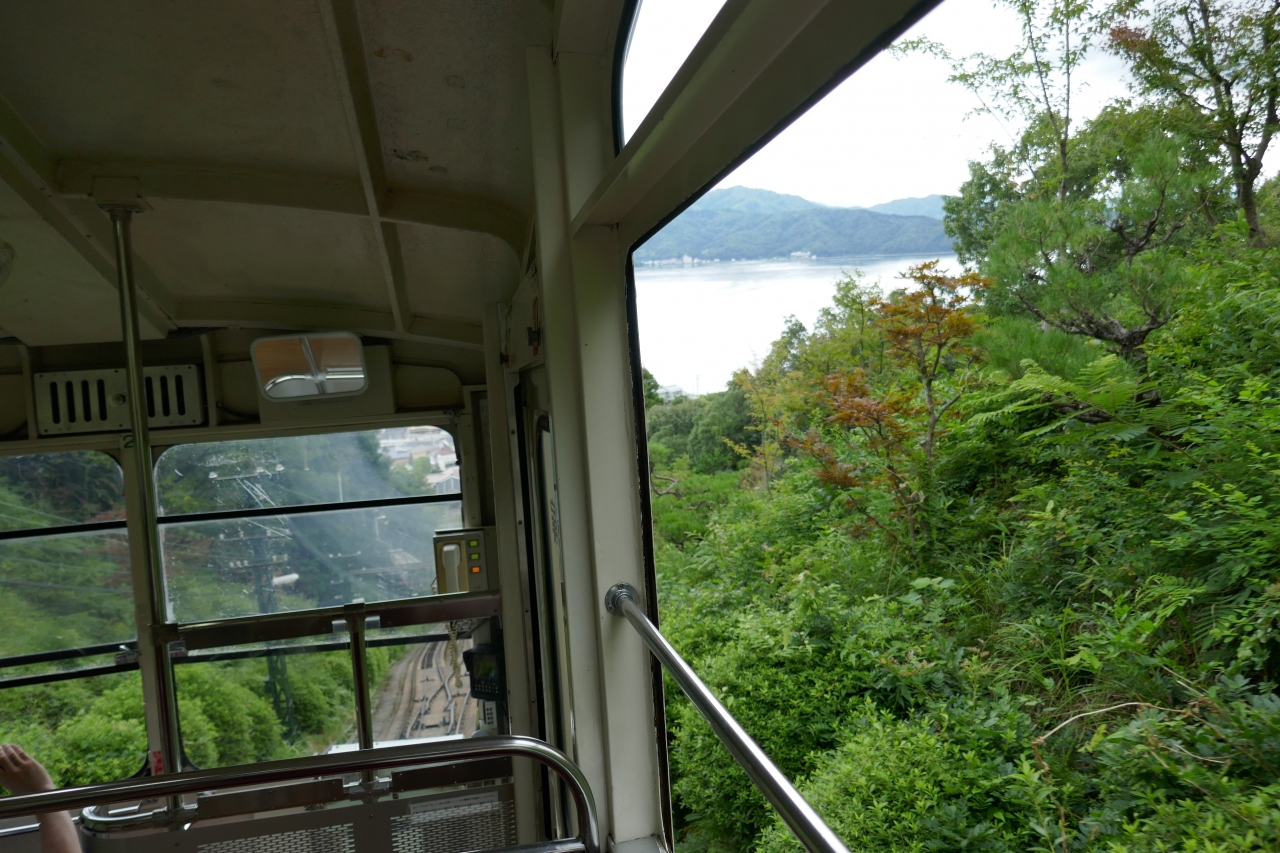 天橋立ケーブルカーは、天橋立の北端と傘松公園を結んでいます。傘松公園には展望台があり、天橋立を眼下に一望することが出来ます。私たちはレンタカーを利用しており、ケーブルカー駅の近くの駐車場に車を停めました。土産物店が有料で駐車場を利用させてくれます。ケーブルカー自体は昔懐かしいレトロな感じが心地よく感じられました。