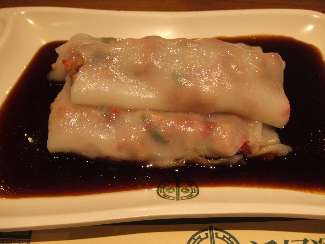平日の開店前に着きましたがすでに行列していました。メニューはデザートも入れて28種類なのでさほど迷いません。写真はチャーシューのチェンファンとクコの実のゼリーです。ともに珍しいメニューなので注文しましたが、あっさりした味でいくらでも食べられます。野菜を使ったメニューが少なかったのが残念でした。値段も380円からとリーズナブルなので他のメニューも食べてみたくなりました。