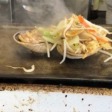 おすすめのセットがお得なようですが、ホテルの朝食でおなかがいっぱいだったので、大アサリと生ガキだけいただきました。単品でもちゃんとお野菜なども付いてきます。