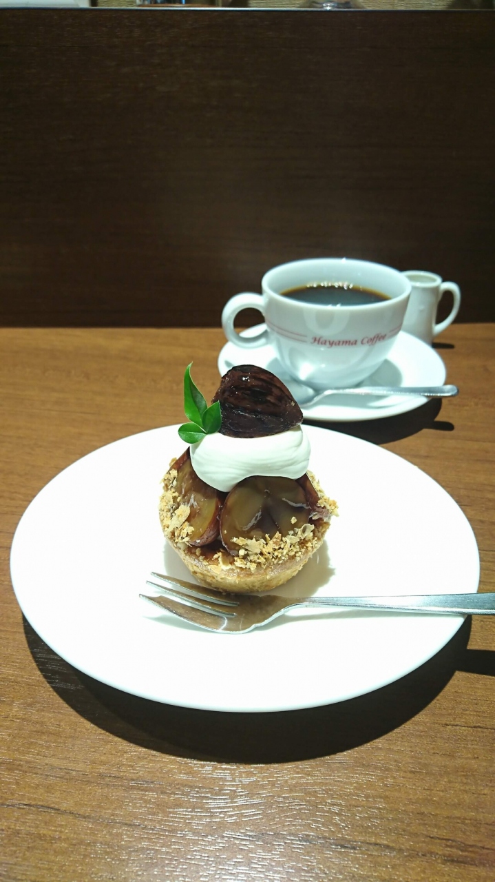 栗の渋皮煮ののったモンブランと、コーヒーをおーだーしました。