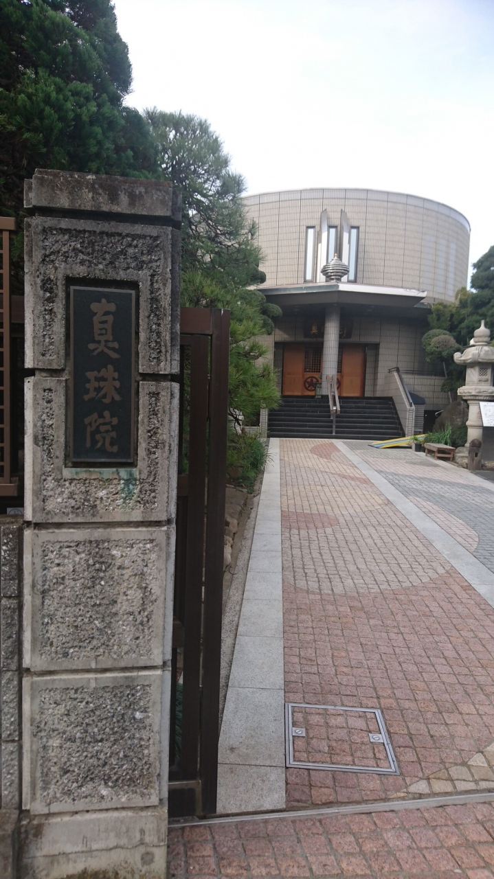 小石川の伝通院の周辺には多くの寺院が立ち並んでいますが、そのうちの一つで伝通院の西側に建つ真珠院にお参りしました。近代的な円形の建物が特徴的な浄土宗の寺院でした。伝通院に葬られているお大の甥である水野忠清が開基となって1684年に創建されたそうです。