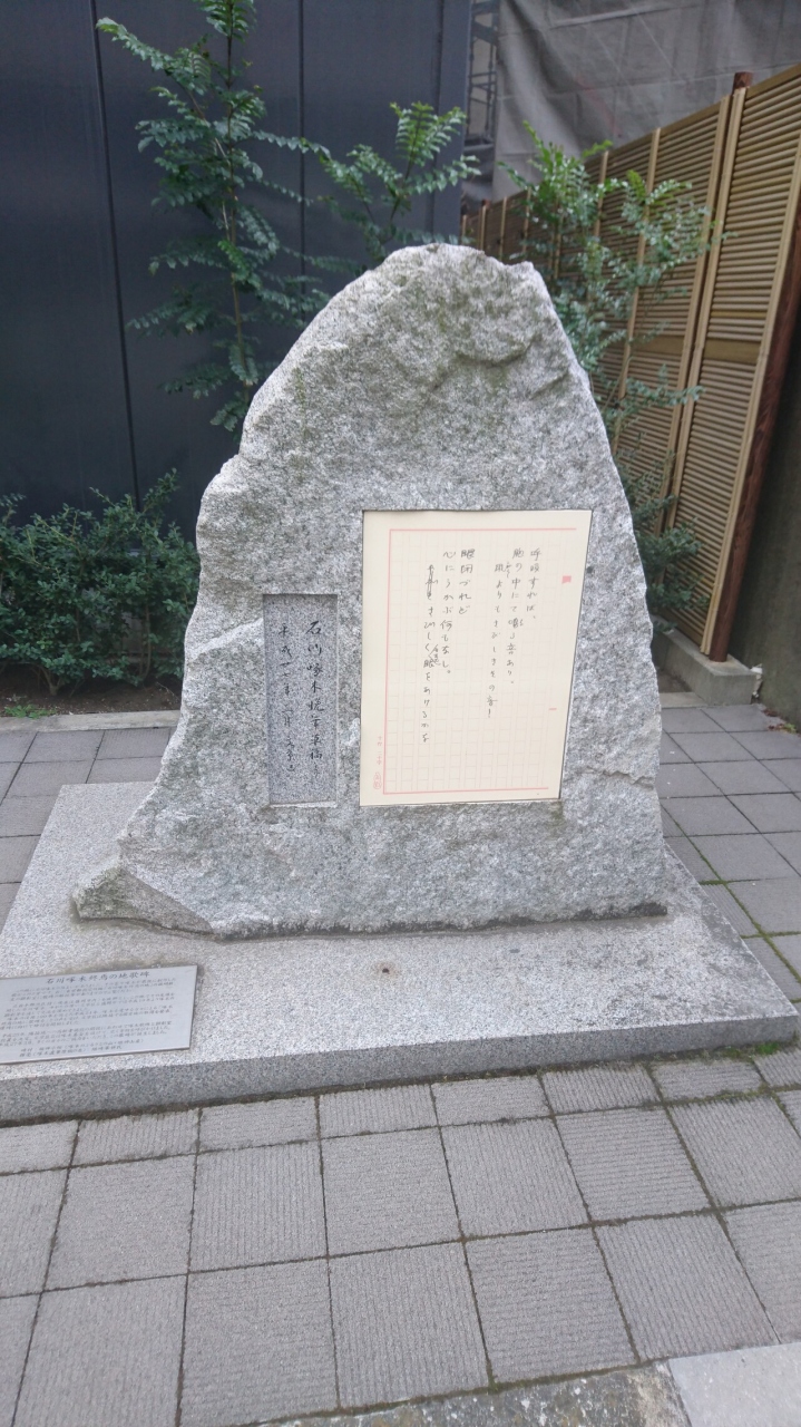 26歳の若さで亡くなった詩人の石川啄木が最後に住んでいた場所が文京区にあります。播磨坂から一本北に入った道路沿いに立派な石碑が建てられていました。それほど広くない道路のそばに大きな石碑があるのでとても目立ちます。住宅街の中にひっそりと建っていました。