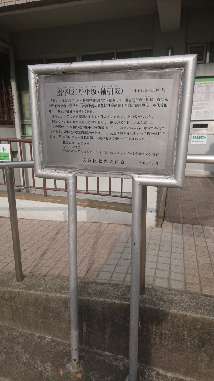 文京区にある播磨坂界隈を散策している時に団平坂と呼ばれる坂を通りました。播磨坂と並行に東から西に上っていく坂道で、150m程度の短く、傾斜もそれほどありませんでした。団平という米商人が住んでいたことから、この名前が付いたそうです。
