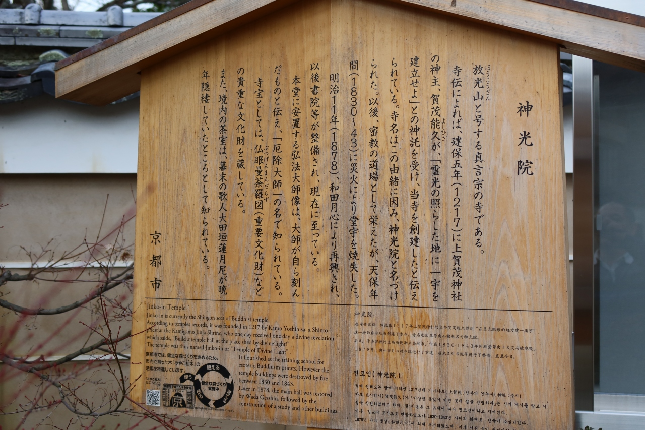 上賀茂神社と賀茂川を挟んだ西側、大宮交番の裏側に神光院はあります。西賀茂の弘法とも呼ばれる1217年に創建された真言宗のお寺です。訪れてみると観光客はほぼゼロ。しかし境内には放生池、不動堂、方丈、本堂、中講堂などがある立派なお寺。弘法太師像が公開されていることもなく訪れる人が少ないのも分かりました。