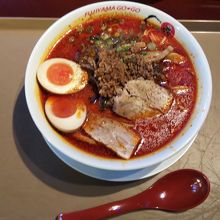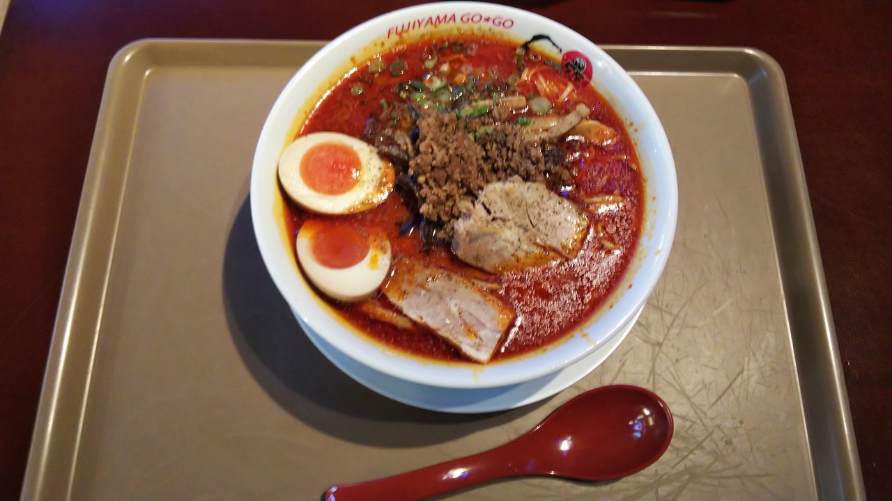中部国際空港島のフライト・オブ・ドリームスのフードコートにあるフジヤマ55でラーメン食べました。普段、フジヤマ55ではつけ麺を食べてましたが、見たことないスパイシーラーメンが気になり注文。かなり辛かったので汗が止まりませんでしたが美味しかったです。寒い日に食べると丁度良いかも。