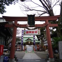 静かな住宅街にある神社で、周辺にはお寺が点在しています。