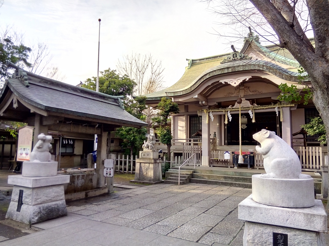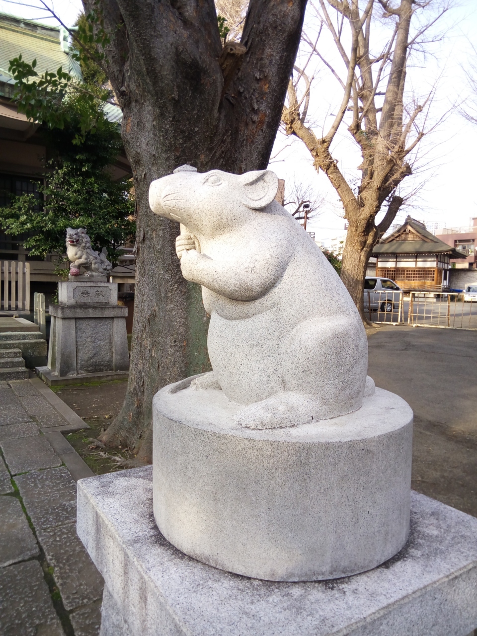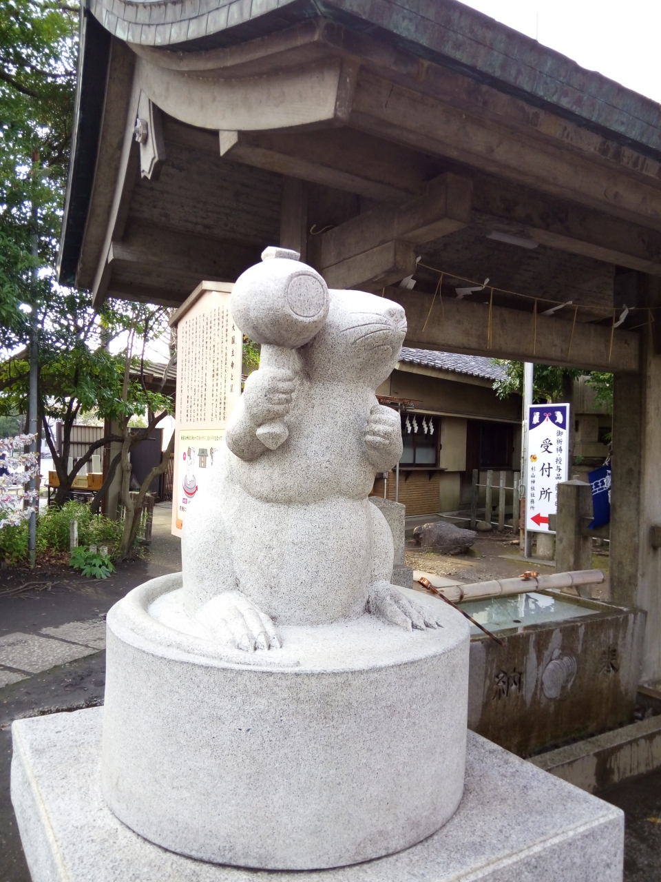 境内には、創建1350年を記念して建てられた、大国主命の使いの狛ねずみがいます。