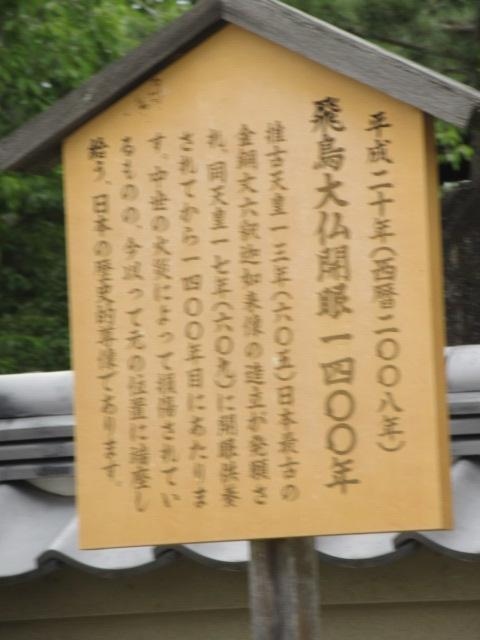 飛鳥の散策で訪問したお寺です。飛鳥寺としてパンフレットなどに載っているお寺で、とても有名な観光地です。蘇我氏にかかわるお寺で、火災の被害があったものの、現在も本堂などが残っています。中では飛鳥大仏というお釈迦様を見ることができました。ちょっと頭が大きめな印象のお釈迦さまでした。お寺の奥にはお墓(首塚)もあるので一緒に見学するといいと思います。