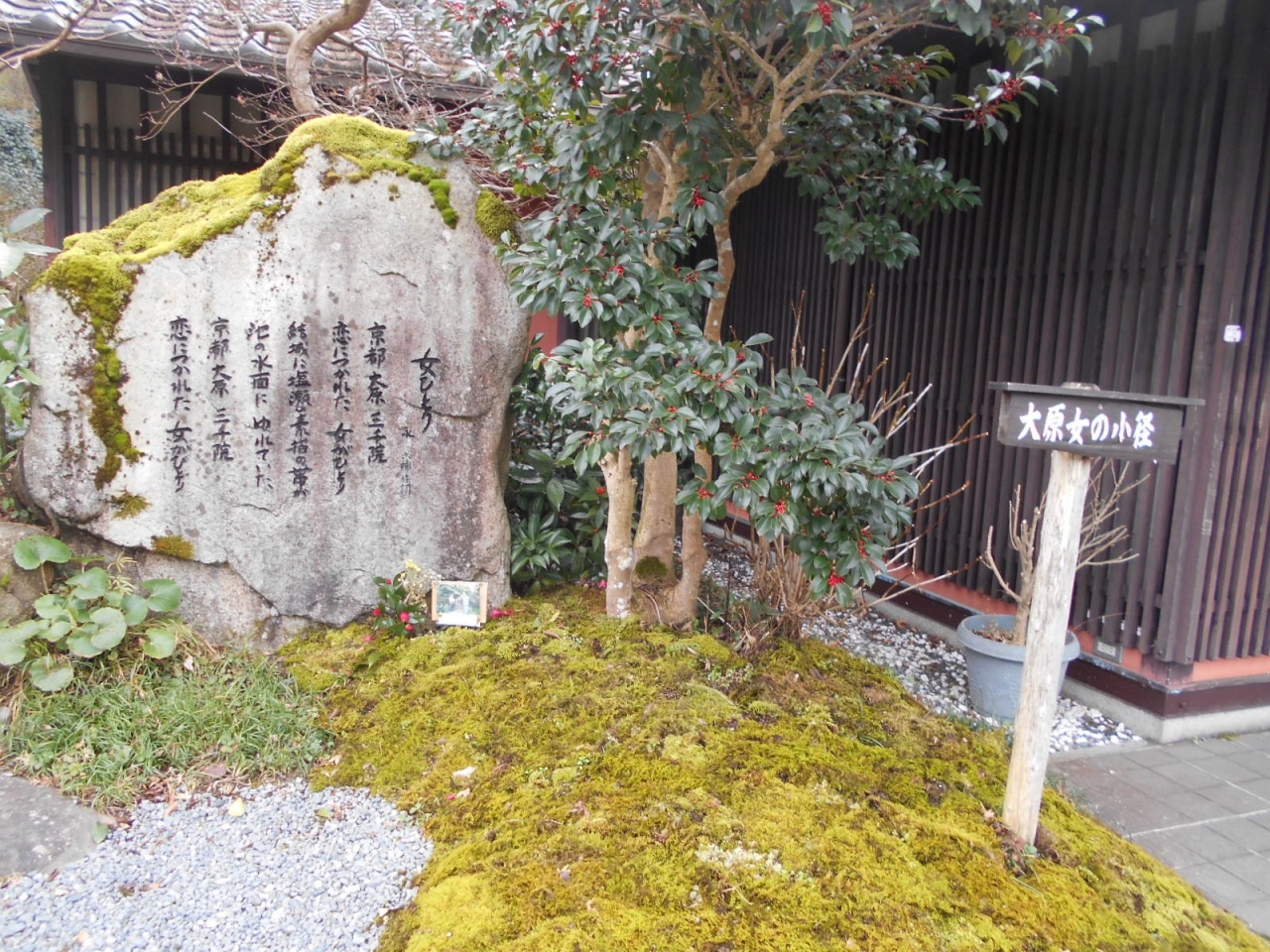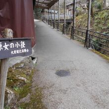 大原のバス停留所の近くから三千院に向かうまでの、呂川に沿ってある小径です。道ぞいに、茶店や雑貨屋、お漬物店、ポン酢店などが並んでいます。のどかで風流です。ゆるやかですが坂道です。三千院まで10分くらい歩くかなと思います。