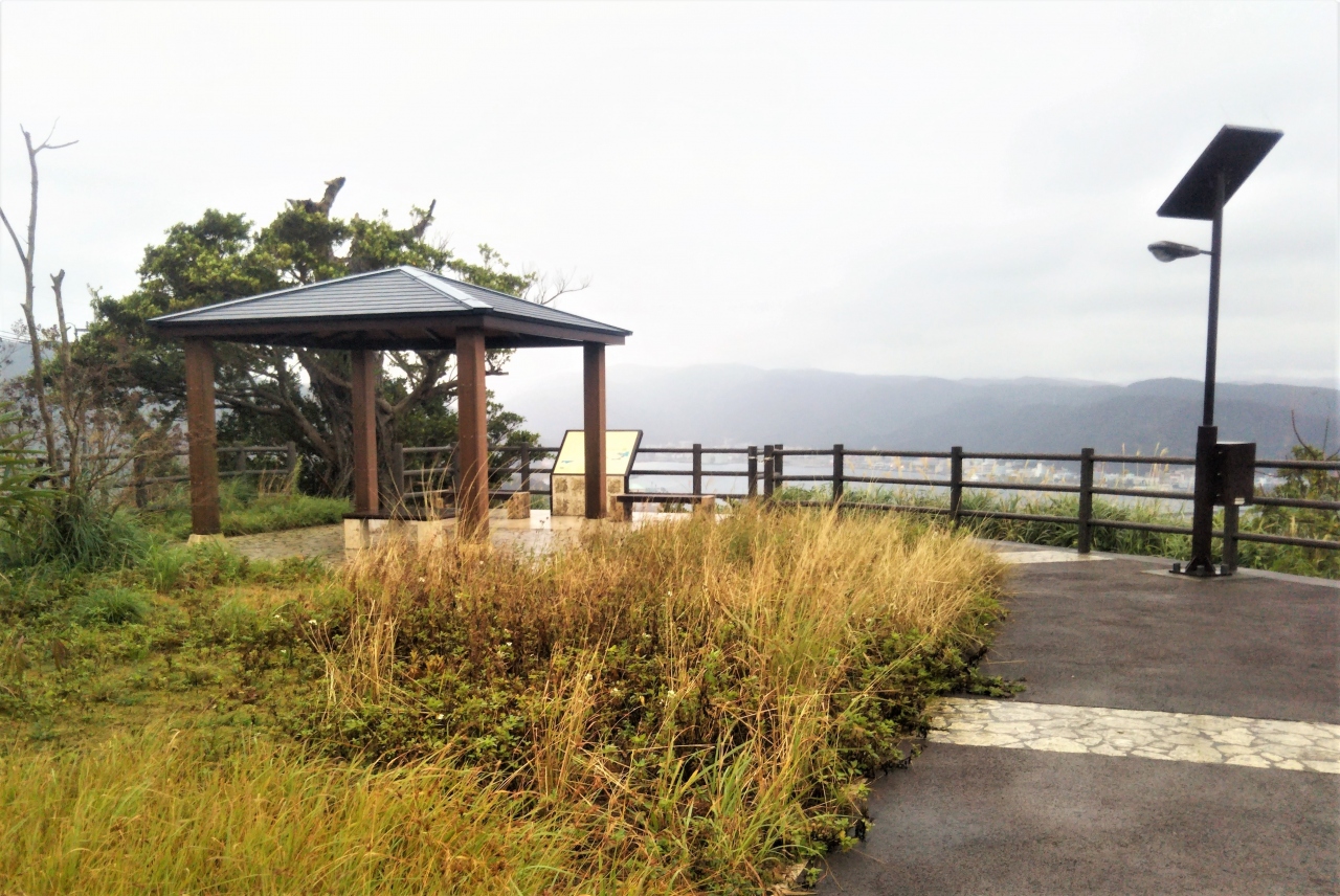 名瀬から龍郷に向かう県道79号沿いにあります。名瀬湾を一望できるビューポイントですが、今回、当日の天候が悪く、雨・風にけぶる中でしたので、さーと一眺めしただけで退散。是非次回は好天の日に来てみたいものです。