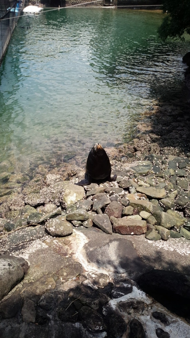 ちょっと古めの水族館で、一部、海を使っての動物展示をしていました。