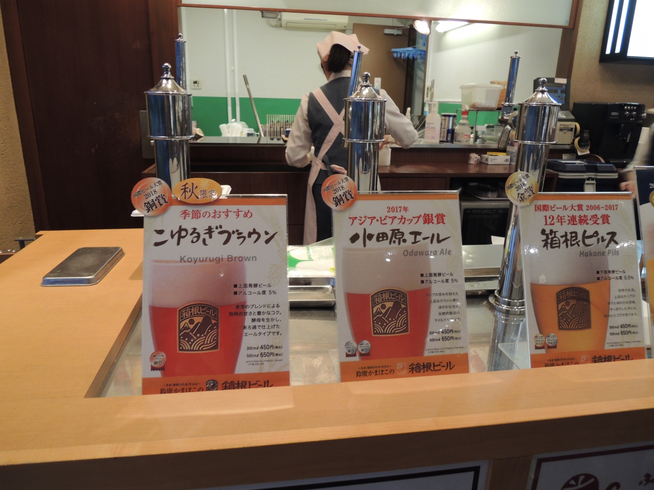 東名高速道路御殿場インター近くにある蒲鉾の有名店・鈴廣の御殿場店です。蒲鉾にもたくさんの種類があり、店内では試食がたくさんあるので、気に行ったかまぼこを買うことができます。また、店内の別のブースではビールも販売しており、その場で買って飲むことができ、かまぼこをおつまみにビール、なんてこともできるようになっています。
