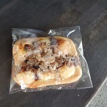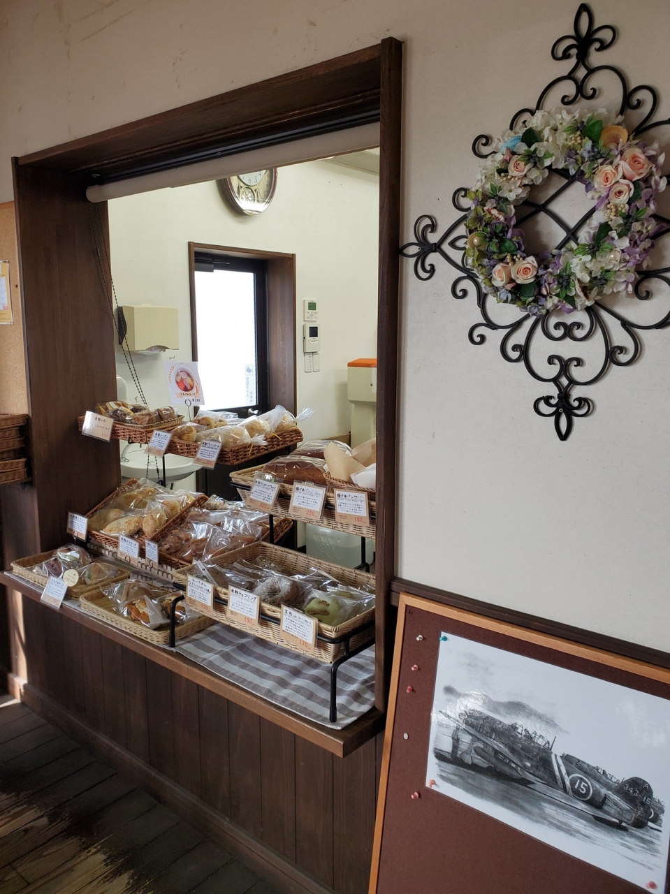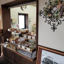 こじんまりとした商品棚には、甘いパン、調理パンなど意外と多彩なラインナップ。