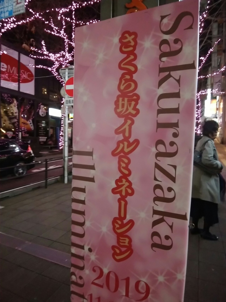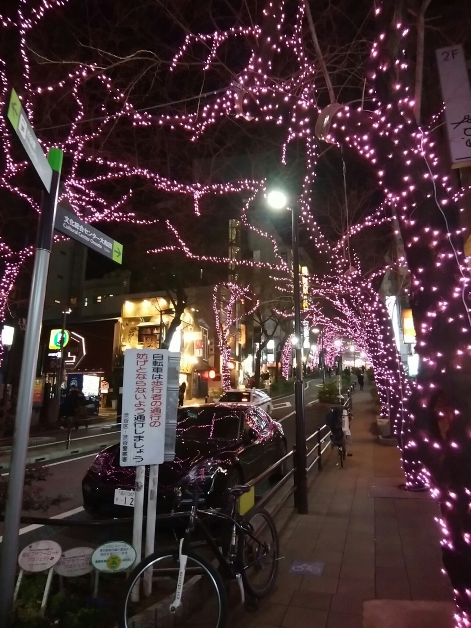 夜は、ライトアップしていて、春先取りのようなピンクのライトアップで、まるでサクラのようでした。