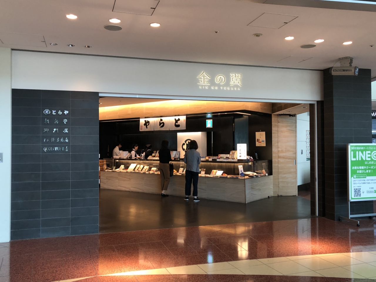 羽田空港の第2旅客ターミナルの出発ロビー階に、いつのまにか「金の翼」という、ちょっといいお菓子屋さんのコーナーが出来ていました。