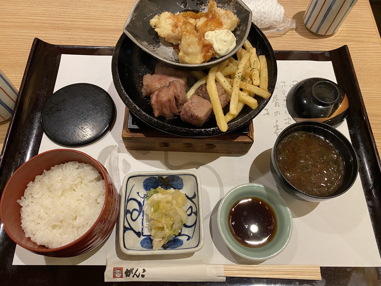 打ち合わせの合間に大阪支社の同僚と利用しました。日替わりランチがステーキと鶏南蛮のセットだったのでこちらをチョイス。1000円前後で驚きの豪華感です。ご飯も味噌汁も美味しくさすががんこと言う丁寧な味付けでした。大阪出張では便利な存在です。