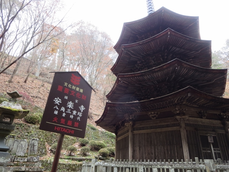 国宝の八角の3重の塔を見るために入りました。訪れた日は本堂で葬儀の準備中でした。本堂の隣りに3重の塔に入る為の入場券売り場と入口が設置されていました。3重の塔は4重に見えますが、一番下は裳階(もこし)とのことで、数えないとありました。