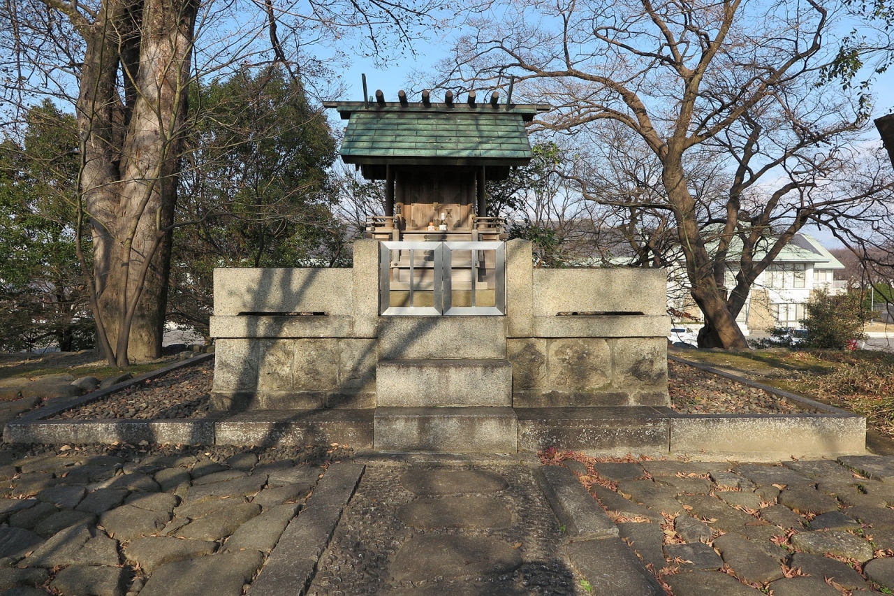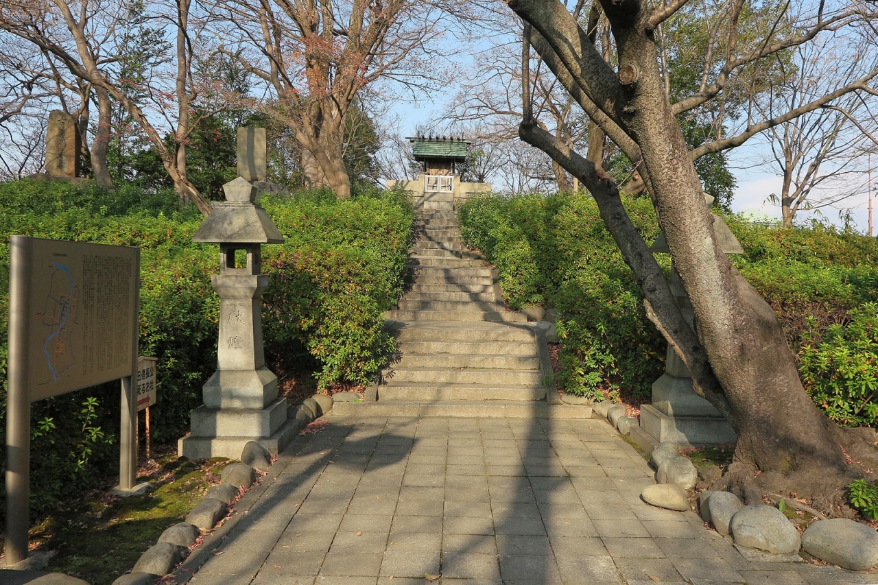 城址と刻まれた碑がありますが、実際には”清須越し”による廃城跡なので、遺跡も保存されずに荒れたままになっていたでしょうし、後世の開発もあって満足な調査もできないまま公園として整備されてしまったことが分かります。ただし園名にあった信長公の社はそれなりの貫禄がありました。