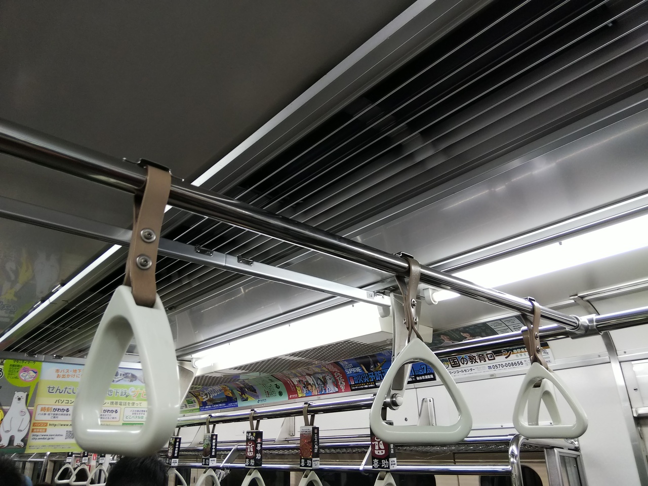 なんか中途半端に懐かしい感じで、市バスは丸のV字吊り革らしいが、それとはあべこべな感じ。