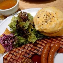 パンケーキは表面はサクサク、口に入れると溶ける不思議な食感で美味しかったです。