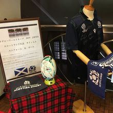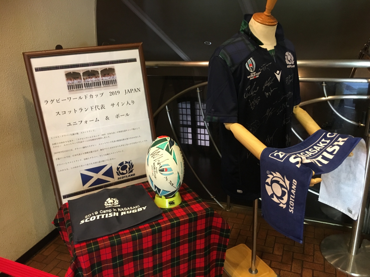 グラバー園を見学し終わると、ここを通らなければ外に出ることができません。長崎くんちに関するものが展示されているのですが、今回はラグビーワールドカップ、スコットランドチームのサインボールとユニも展示されていました。