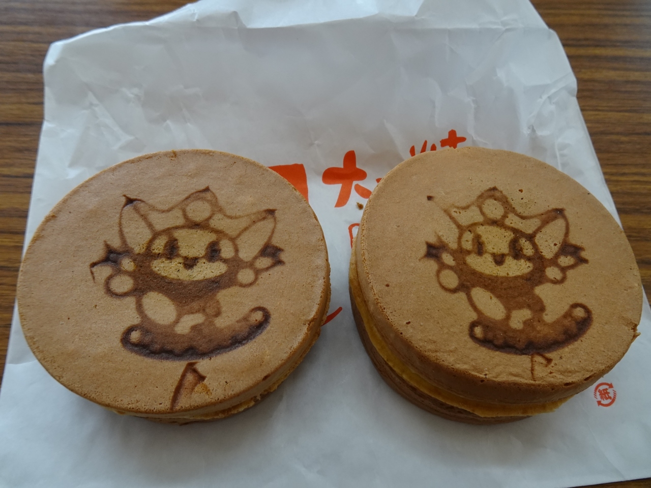ひしみちゃんが描かれた大判焼きが名物の一つ。普通の餡のほかに季節あんがあり、訪れた日は焼きいも味でなかなかの美味です。