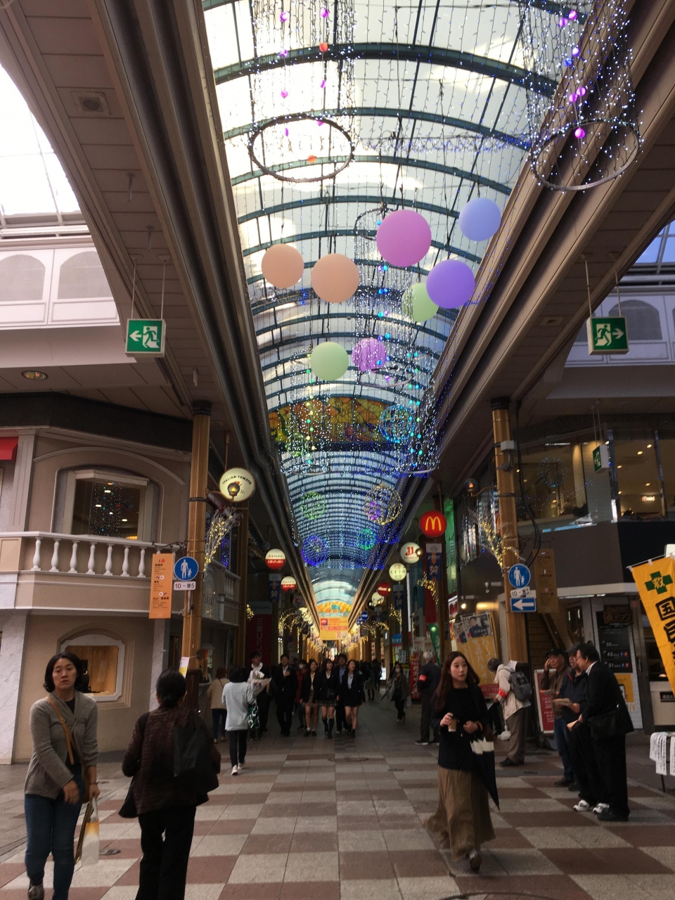 朝から晩まで、活気のある商店街です。お土産物やさんから日常のショップまで、まさに地元の人から観光客まで利用しています。