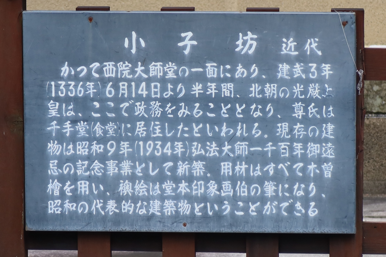東寺境内の中央西側、蓮華門の東側にある屋敷が小子房です。天皇をお迎えする迎賓館として建てられた屋敷で、正面には豪華な唐門が備えられています。現在の建物は昭和9年に再建されたものです。内部は非公開なので表からみるだけですが、豪華な佇まいが垣間見えます。