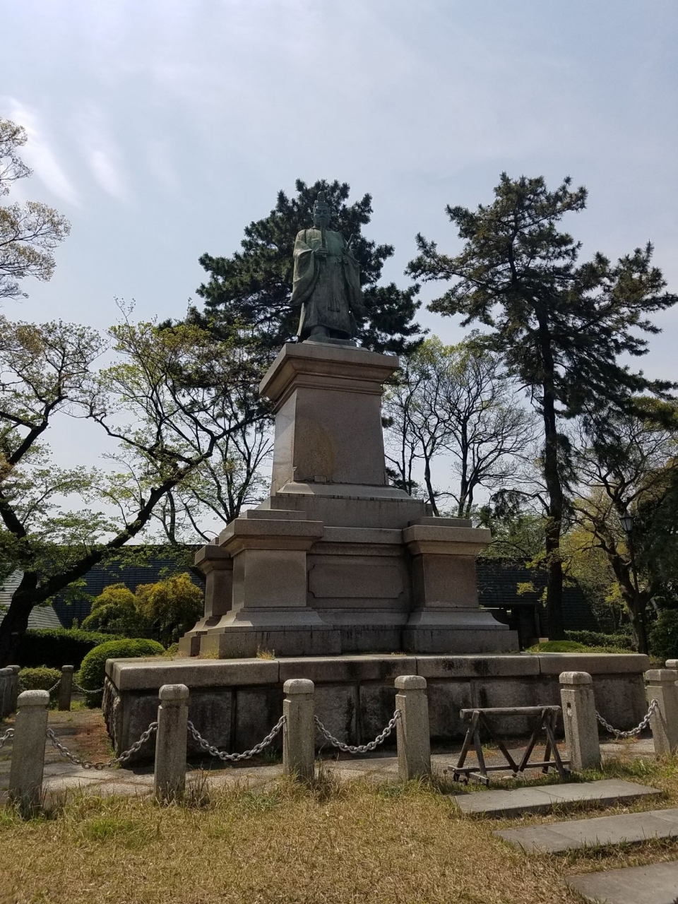 掃部山公園にあります。随分と高い台座の上に建っているので誰だろうと思ったら横浜開港に関わった伊家直弼さんでした。井伊家は一時、掃部山公園の土地を所有もしていたそうです。再建されている銅像部分よりも古くからある台座部分だけが横浜市認定歴史的建造物に指定されているとのことで、よく見ると台座も凝った意匠をしているので注目してみてください。
