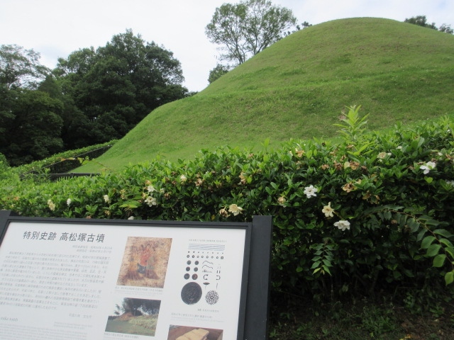飛鳥の散策で訪問した古墳です。少し小高くなっった場所にありました。古墳は夏でしたので、色鮮やかな緑できれいでした。形は円墳で、周辺も整備されていて説明板などもりますので、観光しやすかったです。外では外観を見るのみですが、隣には壁画館という資料館もあり、壁画の勉強もできました。