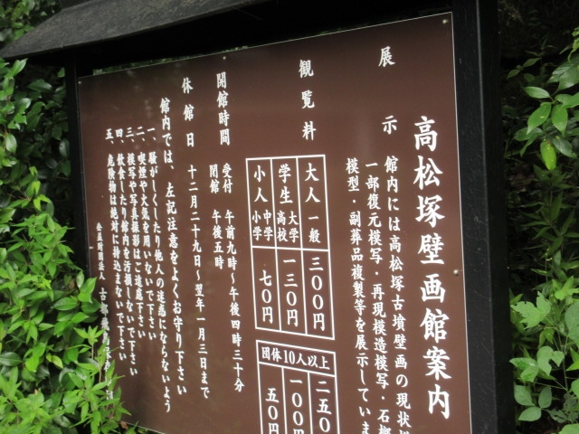 飛鳥地方の散策で高松塚古墳に行きました。その古墳は教科書などでも有名で、中に色鮮やかな古墳の壁画が出てきたとのこと。その壁画がについて学べるのが、古墳のすぐ横にあるこの壁画館でした。石室に描かれた女子と男子の群像や青龍などの絵がみられましたが、復元でした。本物はカビなどから保護しているそうです。狭めなのでちょっとした時間で大丈夫でした。