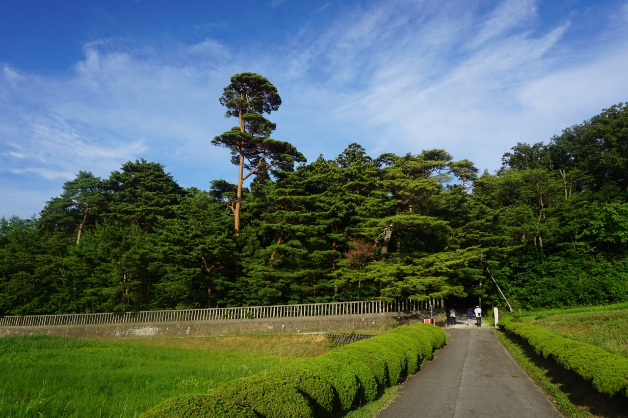 真野御陵は、承久の乱で佐渡配流となり、在島22年。46歳で崩御された順徳天皇のお墓です。石の囲いで囲まれてアカマツの美しい森に覆われた御陵を奥に進むと菊の紋章の門が現れて、やんごとなき天皇を埋葬されているのを感じます。規模も大きいし、周囲はよく整備されて美しい。地元で大事にされている御陵です。