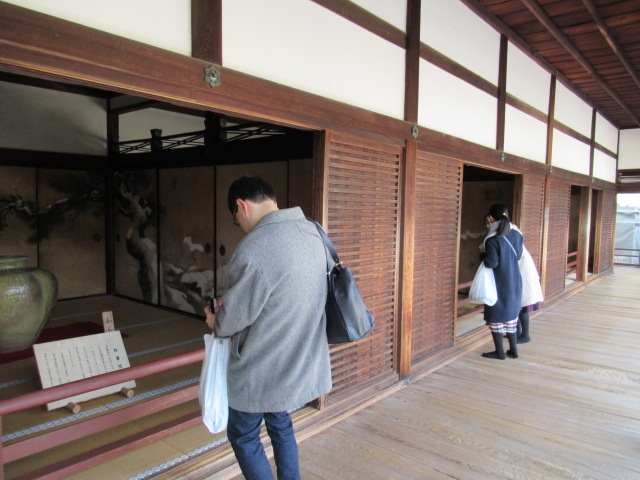 宸殿南庭の西側にある建物で三つの部屋がありますがその内部には松を主題にした見事な襖絵がありデカイ壺も置かれていました。建物の前は御殿の南庭を眺めることができます。撮影OKです。