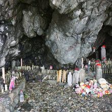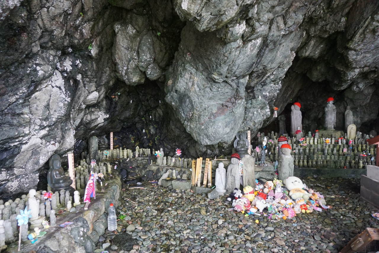 海食洞穴の中や周辺には、地蔵菩薩のほか、無数の石地蔵や石積。そこまで陰気ではないのですが、十分あちらの世界の雰囲気が漂っていました。
