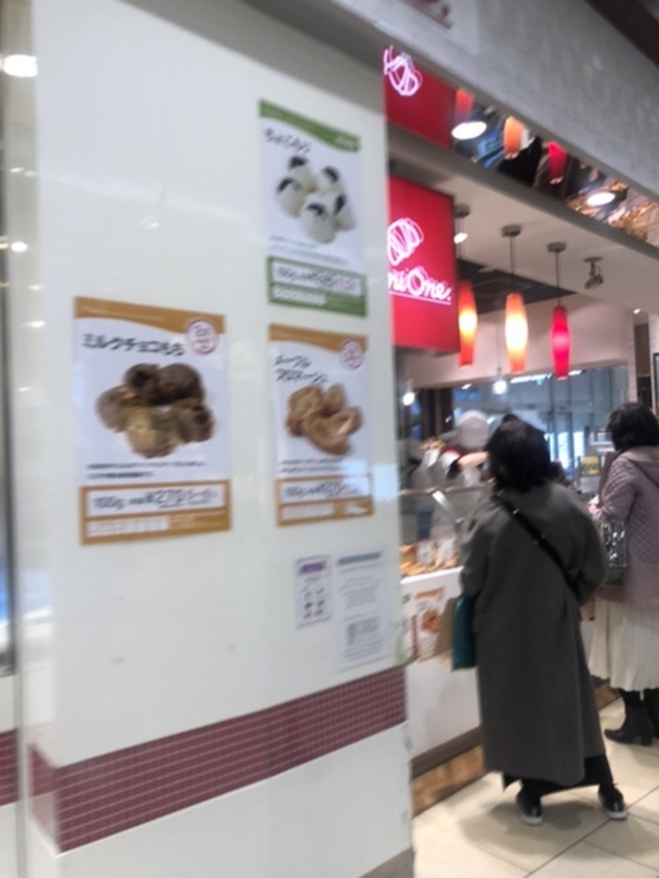 小さな小さなクロワッサンをグラム売りしています。定番はミニクロワッサンと、ミニチョコクロワッサンで、いつもこの2種類を混合して買いますが、最近は期間限定商品も豊富です。ミルクチョコもちという新製品があって気になりました。