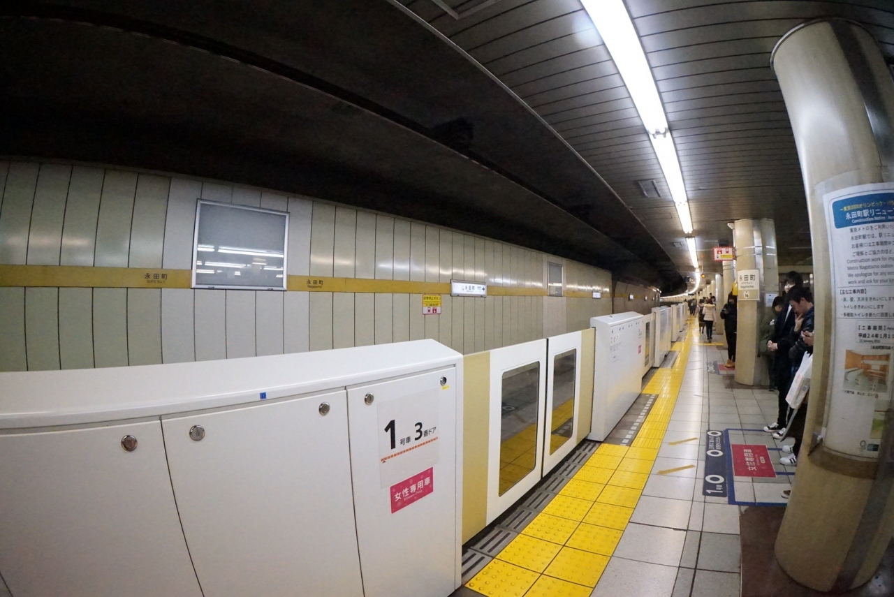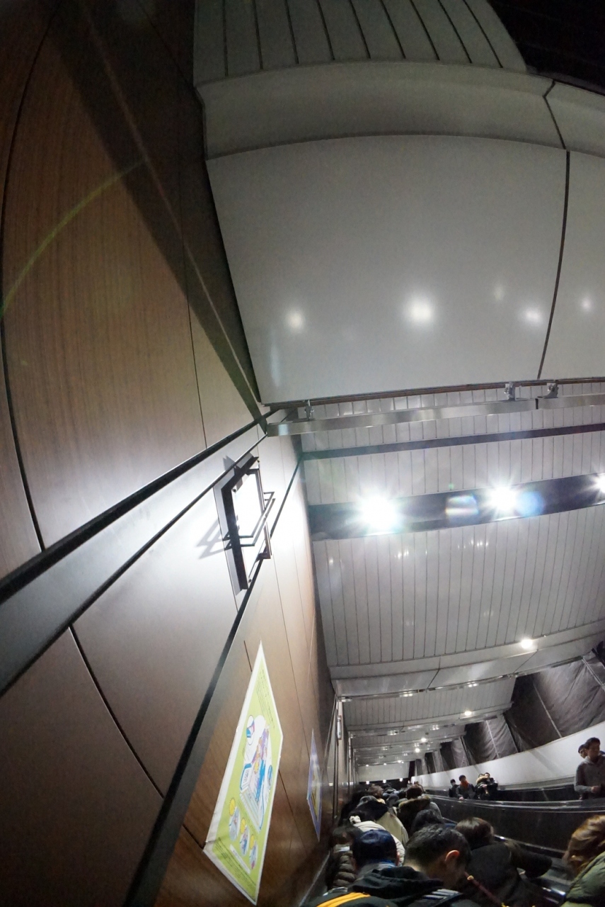 永田町には、長いエスカレーターがあり、常に人が密集しています。