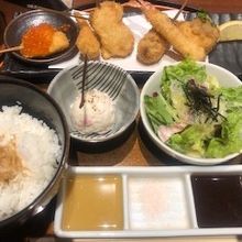 コレドの中にある串揚げのお店です。せっかくなので串揚げのランチをいただきました。