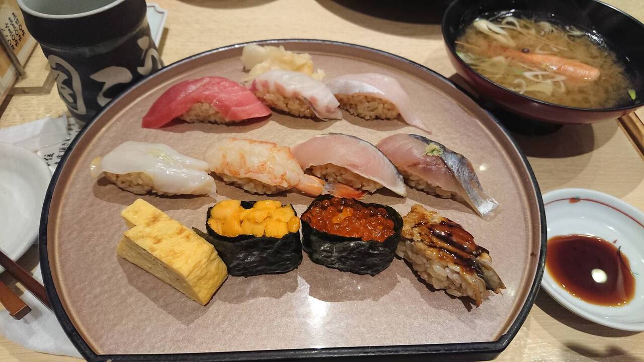 寿司が食べたかったのですし通りのほうへ。なん店舗もあって、満員で入れないようなお店もありました。こうやという店舗をチョイスして妻と食事をしました。さすが海の幸も豊富な宮城県。あっぱれ。どのお寿司も美味しかったです。
