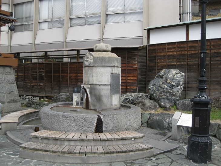 道後温泉駅を降りて商店街の入口の右側にある「坊ちゃんからくり時計」の向こう側にある。湯釜から湧き出すお湯でベンチに座って足湯が楽しめます。温泉の効能なども記された案内板には「ゆっくりと足を温泉につけて、俳句などひねってひかがでしょうか」とあります。俳句の盛んな松山らしく、ついついその気になります。