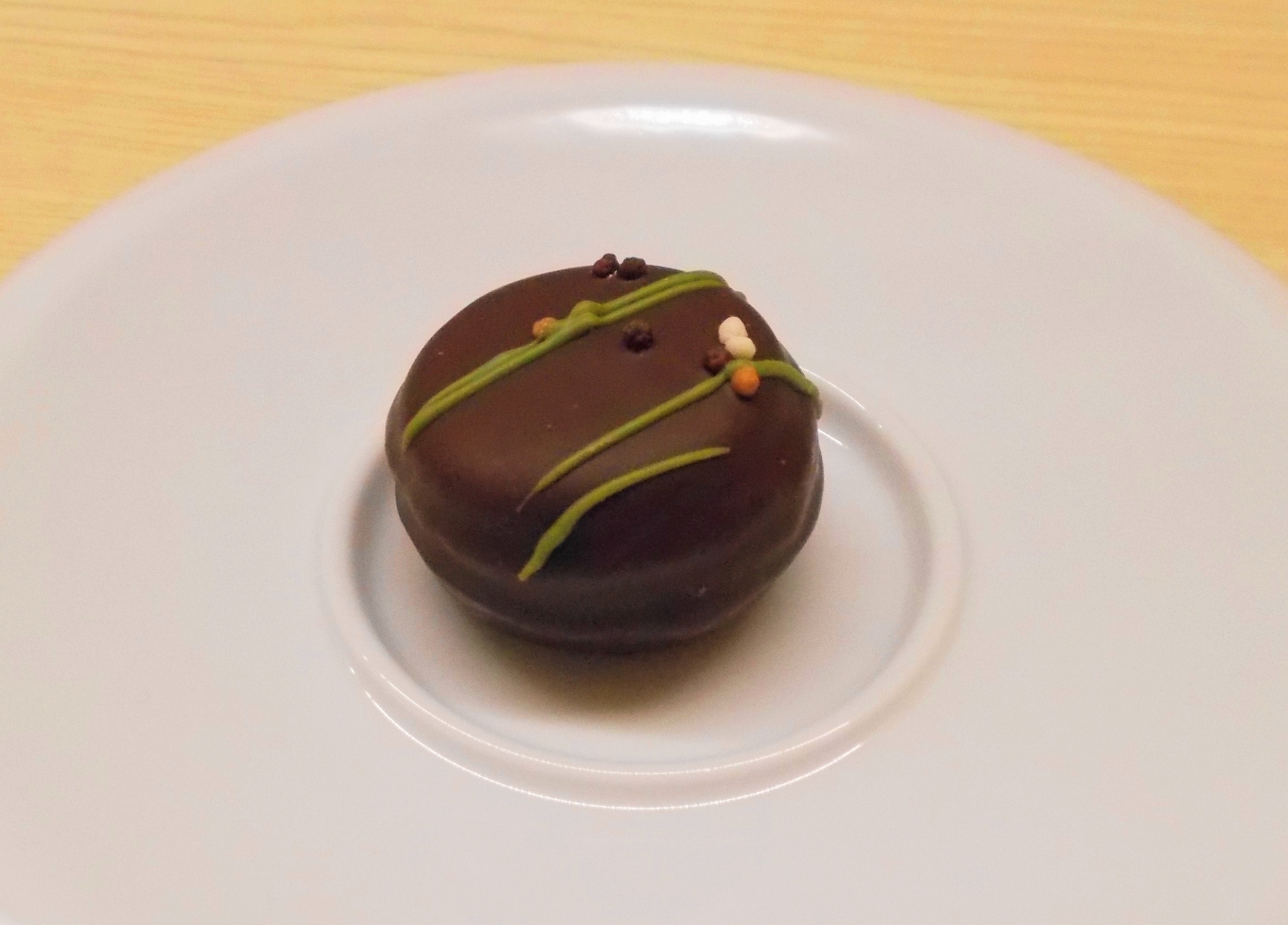 石川県産の食材を使った「ニコロン」は、オリジナルのマカロンショコラを極薄のチョコレートでコーティングした一品。