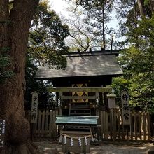大神神社磐座の隣にあります。養蚕や海運の守護神である杵築宮(きづきのみや)と野毛地区の氏神である子之大(ねのおおかみ)が合祀されています。傍らに名木古木のクスノキがそびえ立っているのも神聖な雰囲気を増しています。地元の人でしょうか熱心にお参りされている姿が印象的でした。
