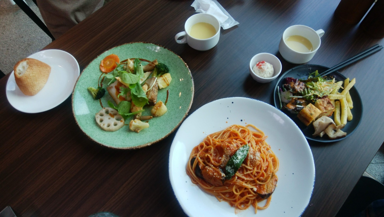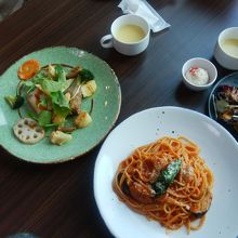 梅小路公園の「緑の館」の中にあります。JR山陰本線の「梅小路京都西」駅で降りたらすごく近かったです。金曜日の午後1時過ぎに2人で行きましたが空いてました。スペシャルランチセットを注文。ハーフビュッフェは、京野菜中心の生野菜サラダやスパニッシュオムレツや高野豆腐たいたんやコーンクリームスープなどがありました。 選べるメインは 茄子のトマトソーススパゲッティと柔らか豚角煮パイのミルフィーユ仕立て 京野菜添えを選びました。後からミニスイーツとドリンクがついてました。1人1620円~1720円でした。