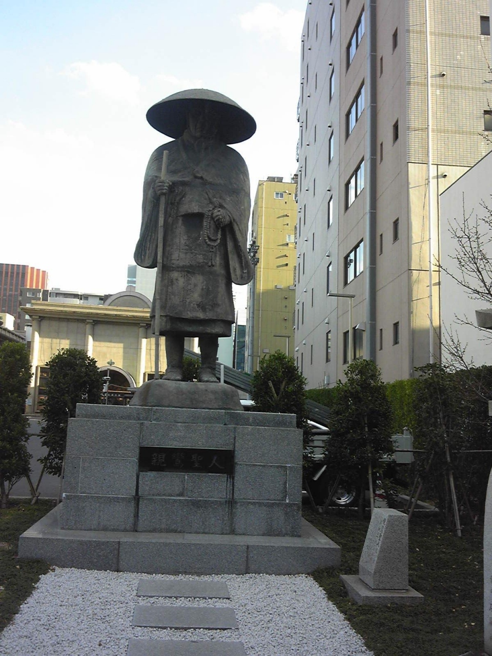 築地本願寺の境内にある、大きな親鸞聖人の像です。
