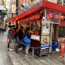 ちょっと並びましたが、回転が早いのですぐに買えました。消費税込みで500円でお買い得でした。お味は出汁が効いておいしく、銀だこのようなカリカリ感はありませんが、小腹を満たしてくれます。持ち帰りではなく、やはりその場で食べたほうがおいしいですね。