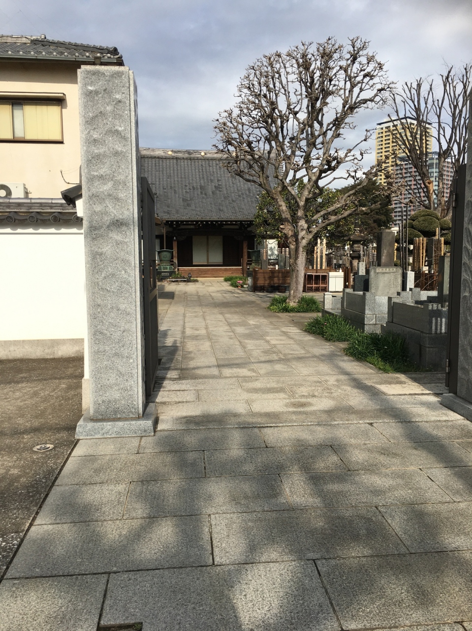 徳川家ゆかりので寺らしく、天台宗の寺で、寺の内に入ると一直線に短い道があり、正面が本堂で、本堂横の大きな木が葉がなかったものの見ものです。右側にはお墓が広がり、観光寺院ではないので、お墓参りの人が多かったです。